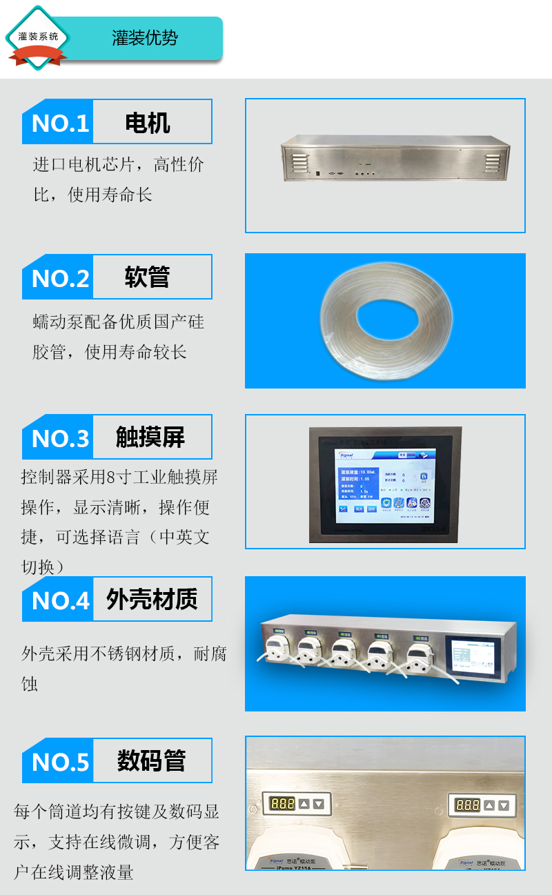 2.外殼采用不銹鋼材質(zhì),耐腐蝕。每通道均有按鍵及數(shù)碼顯示,支持在線微調(diào),方便客戶在線調(diào)整液量。每個通道有獨立的缺瓶止灌功能