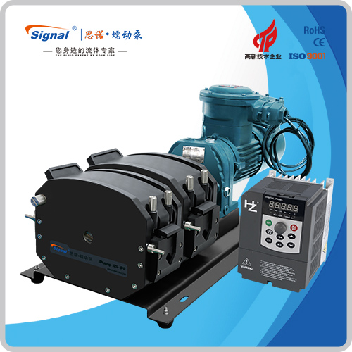 流量范圍:1.5-40L/min 彈性壓管結(jié)構(gòu),軟管壽命長,非常適合大流量液體傳輸 免維護交流減速電機驅(qū)動,變頻器調(diào)節(jié)轉(zhuǎn)速 全金屬泵頭,高精度,更可靠 防爆等級DIIBT4,適合易燃易爆環(huán)境使用