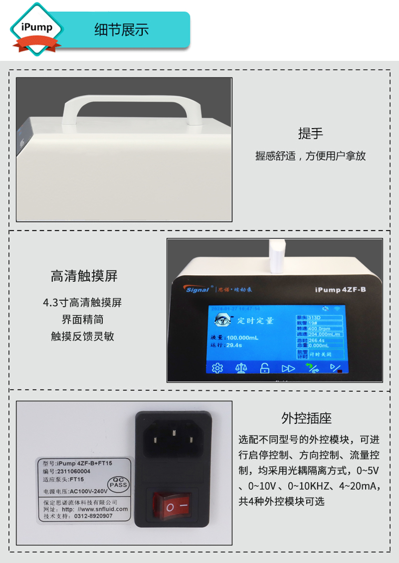 ★觸摸屏蠕動泵具有流量(傳輸)模式、定時定速、定量定速、定時定量四種工作模式。