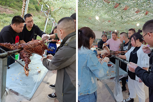 一天的行程,大家在歡聲笑語中結(jié)束了。大家的肚子也咕咕叫了,別著急還有更精彩的,公司還為大家準(zhǔn)備了正宗烤全羊。大家一起舉杯祝愿公司發(fā)展越來越好,再創(chuàng)佳績(jī)!