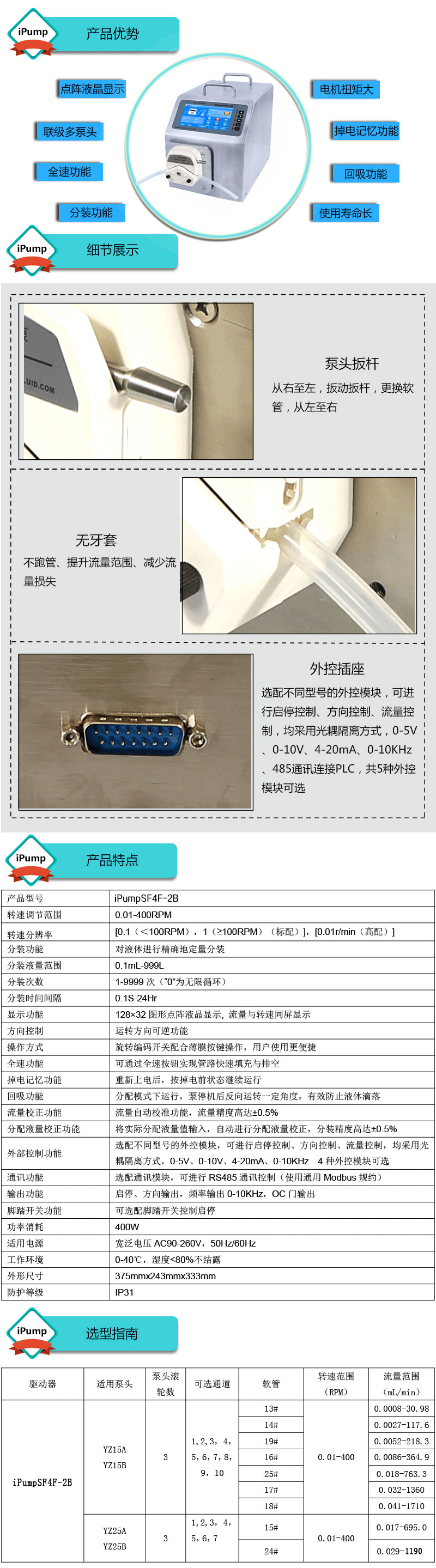1.流量范圍:0.0008-1710mL/min 2.兩種工作模式,流量模式與分配模式可選 3.具有流量校正、分裝液量校正功能 4.分裝精度高達(dá)±0.4%以內(nèi) 5.采用伺服電機(jī)驅(qū)動,控制準(zhǔn),動力強(qiáng)勁 6.線路板全部三防漆處理,防腐、防潮